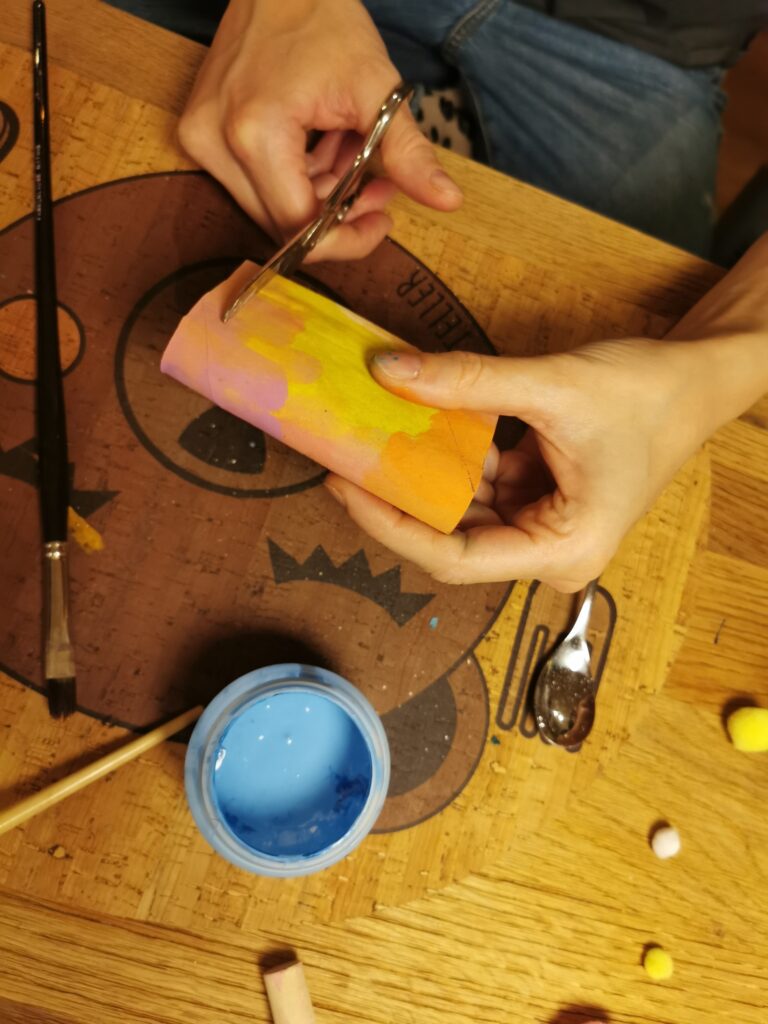 Du könntest die geschnitten Streifen dann innen auch noch mit Farbe bemalen und wieder trocknen lassen – das ist natürlich extrem schön – aber dieser Mehraufwand ist kein Muss. Wir haben das nicht gemacht.
