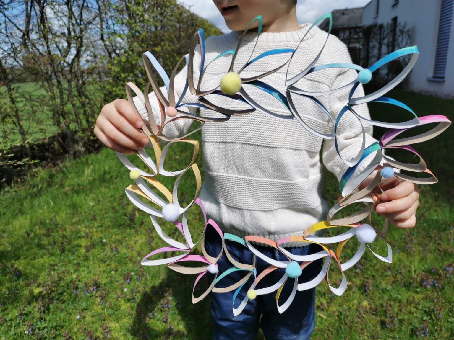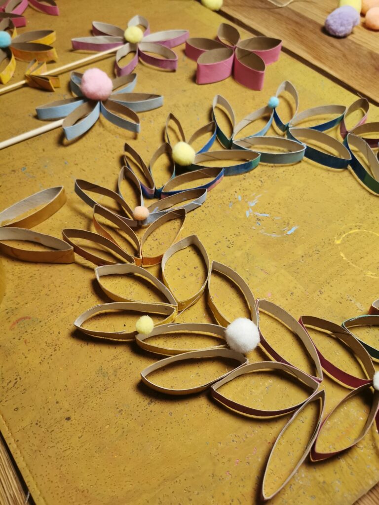bunter Blumenkranz aus Klorollen
